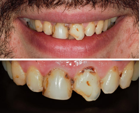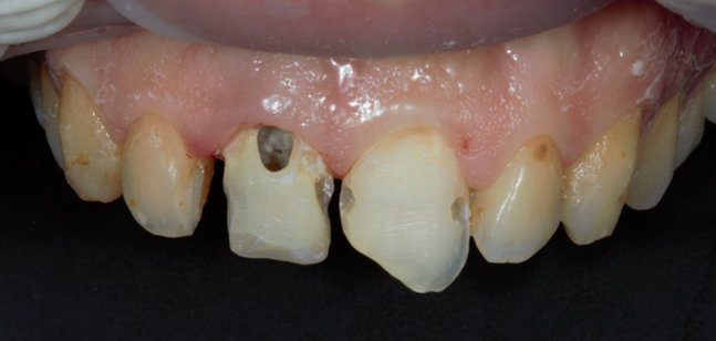 Ο ασθενής έχει εκτεταμένες αποκαταστάσεις παλιών δυσχρωμικών συνθέτων ρητινών με επανατερηδονισμούς στα όρια. Επιθυμεί βελτίωση της αισθητικής των μπροστινών δοντιών με την ελάχιστη παρέμβαση.